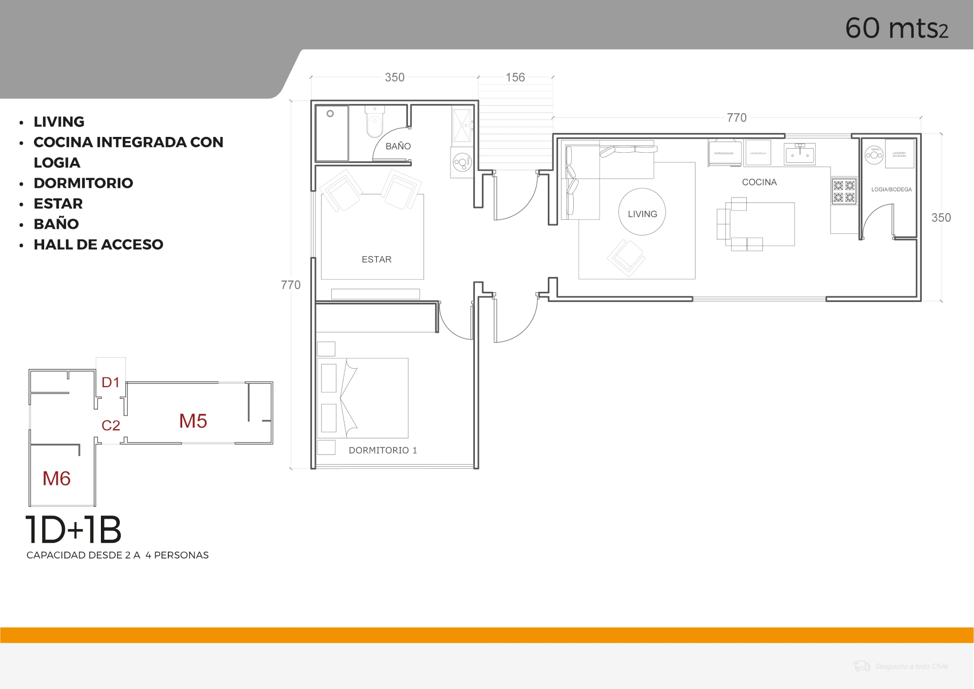 Existen diferentes opciones de programa pensando en tus requerimientos ya que se pueden conjugar los módulos de diferentes maneras. Inicias con 60 m² y puedes llegar a 120 m². Ideal como vivienda permanente, residencia temporal.